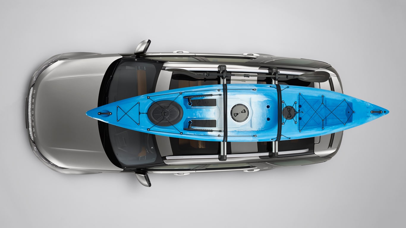 Carries a sailboard, canoe or kayak. Includes lockable multi-purpose holder to carry oars or paddles. Tilts to facilitate easy loading/unloading. Features lockable straps and rubber supports to maintain optimum weight distribution whilst protecting the kayak and vehicle from scratches/scuffs. When fitted maximum load capacity is 45kg. Roof rails and cross bars are required for all Land Rover roof mounted accessories. Maximum load capacity is based upon only one carrying product being fitted.