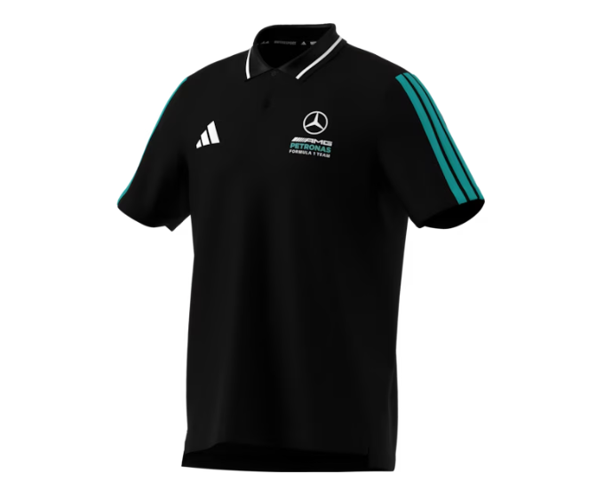 Elegance meets sportiness! The black polo shirt is the ideal item of clothing for day-to-day wear, leisurewear or for your visit to the racing track and provides a stylish way for fans to express their passion for motorsport. A stripe detail on the sleeve gives the black shirt design an informal feel, while a Mercedes-AMG PETRONAS Formula One Team logo and an adidas logo provide additional accents. Made from pure cotton, the classic fanwear is always comfortable to wear.